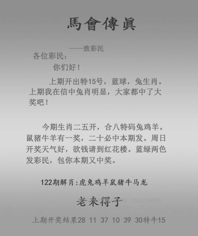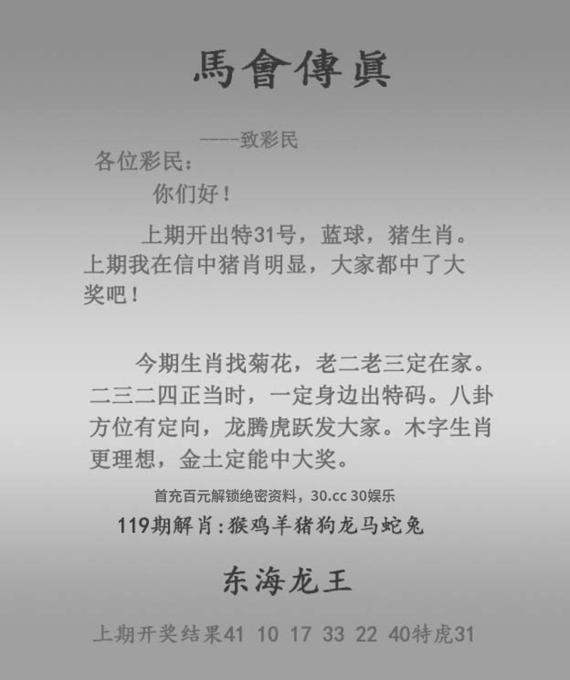 119期:【正版马会传真】{开:蛇49} 今期生肖找菊花,老二老三定在家 二三二四正当时,一定身边出特码 八卦方位有定向,龙腾虎跃发大家 木字生肖更理想,金土定能中大奖 东海龙王 综合取肖:猴鸡羊猪狗龙马蛇兔 ![]() |